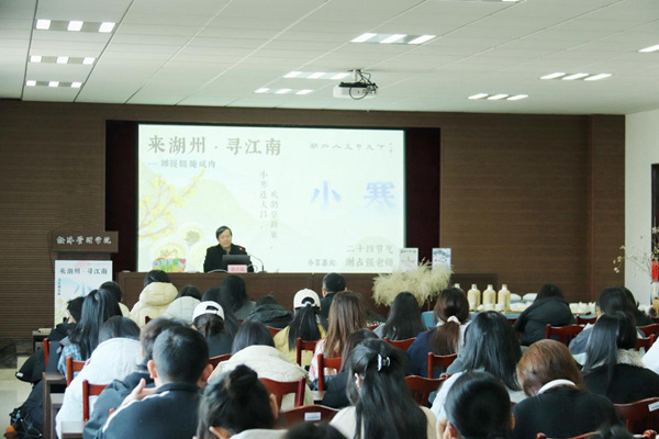 冬意渐浓,岁寒将临。为深入传承江南乡土文化,践行高校立德树人中心任务,1月7日下午,“摊镬糍·腌咸肉——‘来湖州·寻江南’品读江南百味第二十三期”主题活动在我校举行。本次活动由校党委宣传部、湖州安定书院主办,经济管理学院承办,市委宣传部副部长、市社科联主席谢占强主讲,师生齐聚一堂,共赴一场兼具文化深度、烟火气息与育人温度的节气之约。