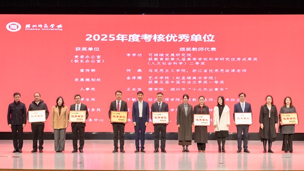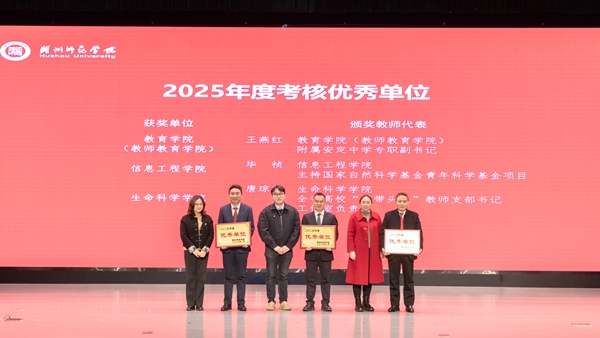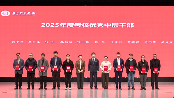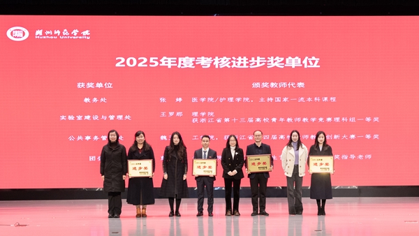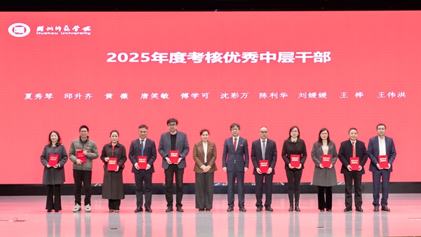 会议对2025年度优秀单位和进步奖单位、第四届“白天鹅”奖获得者、年度考核优秀的中层干部进行表彰。校党委副书记陈永华宣读表彰文件,教师代表和校领导分别为他们颁奖。