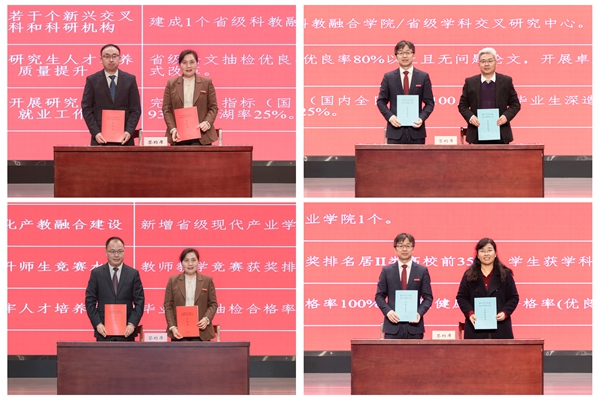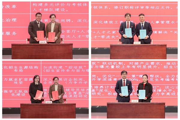 校党委书记许慧霞与二级单位代表签订党风廉政建设责任书、意识形态工作责任书和平安校园、综治创安目标管理责任书。盛况与职能部门代表签订年度目标责任书。