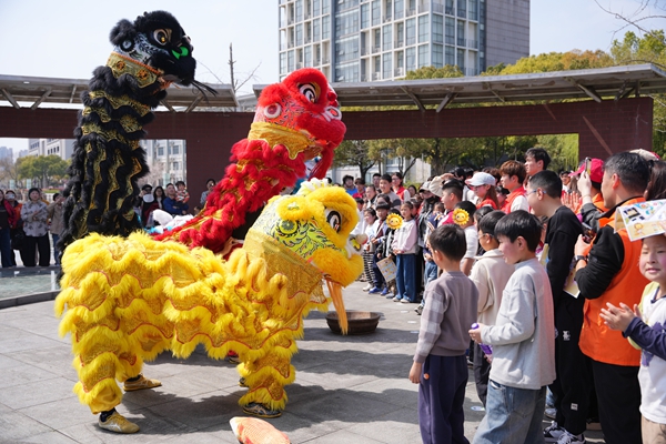 活动在体育学院舞龙舞狮队气势恢宏的表演中拉开帷幕。灵动矫健的龙狮、铿锵激昂的鼓点,瞬间点燃现场热烈氛围,为公益奔跑注入蓬勃生机与奋进力量。现场还精心设置打方宝、跳房子、踢毽子、推小车、投壶、编花篮等传统趣味游戏,青年志愿者们耐心陪伴、悉心引导,为完成打卡的孩子们颁发奖牌与爱心礼品。欢声笑语洋溢全场,孩子们纯真的笑脸与温暖的互动,成为春日里最动人的风景。