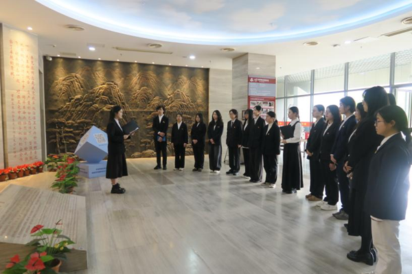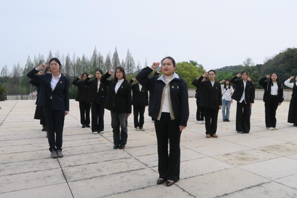 在辅导员刘舒雅的带领下,全体党员面向党旗,重温入党誓词。铮铮誓言在陵园上空回响,表达了新时代青年党员继承先烈遗志、为党和人民事业奋斗终生的坚定信念。