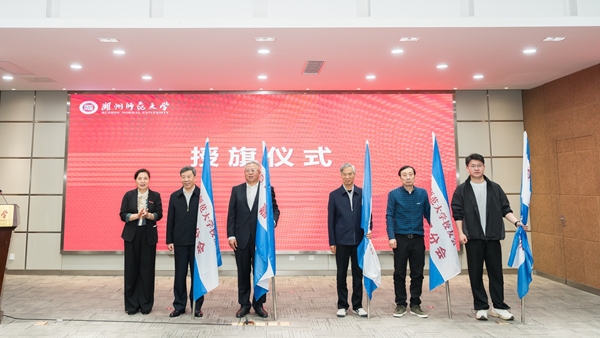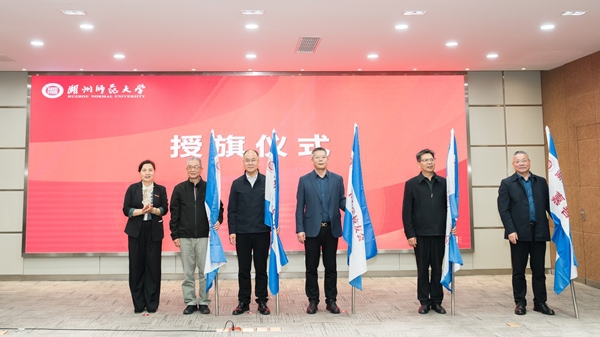 会议审议通过了《湖州师范大学校友会章程(修订稿)》及校友会理事会成员名单。许慧霞为各地校友分会颁授会旗。