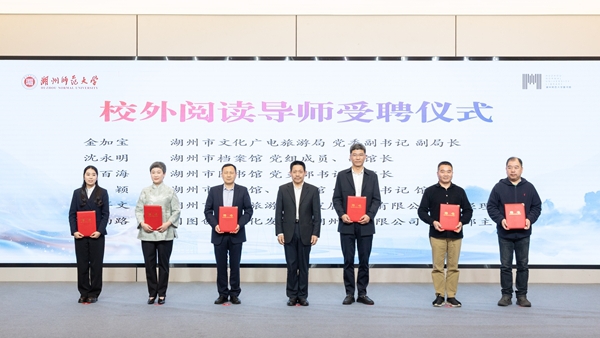开幕式上,“无界·共享”文化阅读联盟正式成立。该联盟由我校图书馆发起,首批成员有新疆阿克苏教育学院、湖州市文化广电旅游局、湖州市档案馆、湖州市图书馆、湖州市博物馆、湖州市美术馆、湖州文化旅游运营集团有限公司、国图创新文化发展(湖州)有限公司等九家单位,共同构建“馆—校—地—企”全域文化阅读平台。该联盟以阅读为纽带,聚力文化传承发展。
