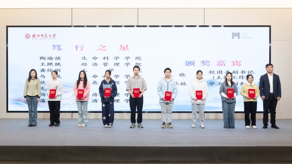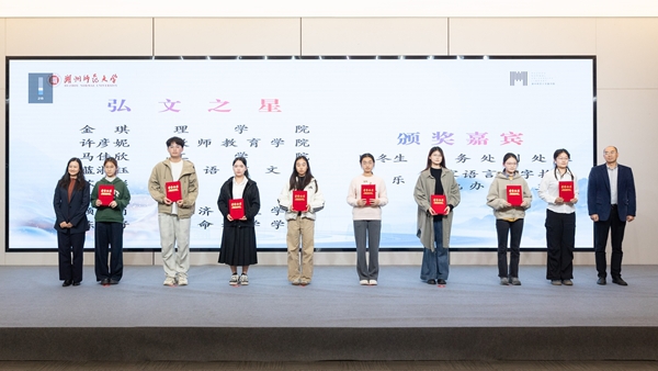 学校相关部门负责人为获得2025年度“阅读之星”“笃行之星”“弘文之星”等荣誉称号的学生颁发荣誉证书,勉励青年学子以书为友、阅见世界。