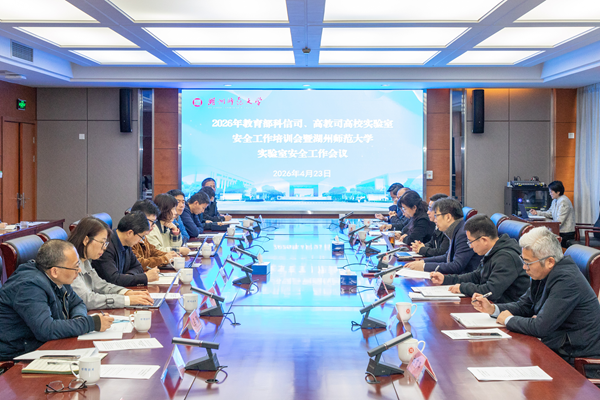 4月23日上午,学校组织参加教育部2026年高校实验室安全工作培训会并召开实验室安全工作会议。校长盛况、校党委副书记丁敢真出席,实验室安全工作领导小组成员、科技处和教务处负责人参加主会场集中观看,各学院实验中心主任、实验技术人员、实验教师及部分学生代表在各自分会场同步线上学习。会议由丁敢真主持。